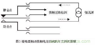 觸點接觸電阻包括動合點接觸電阻和靜合點接觸電阻,是繼電器最重要的參數(shù)之一,也是最難測的參數(shù)的之一。圖3顯示了對繼電器觸點進行四線凱爾文測試的原理。說其難測是因為接觸電阻只有幾十毫歐、十幾毫歐,甚至只有幾毫歐,如果不是全線采取四線凱爾文測試,扣除測試系統(tǒng)的內(nèi)部電阻和接觸電阻則很難將其測準(zhǔn)。說其重要是因為觸點接觸電阻除了反映觸點的電性能(電阻)以外,還反映了觸點的化學(xué)和物理性能,例如觸點表面是否有鈍化膜產(chǎn)生,觸點間的壓力是否能達到設(shè)計要求。試驗證明當(dāng)繼電器中的彈性材料應(yīng)力減退,觸點壓力下降將會在觸點接觸電阻參數(shù)上有明顯的反映,所以觸點接觸電阻與繼電器的接觸可靠性密切相關(guān)。表2顯示了繼電器樣品在試驗中觸點接觸電阻和觸點壓力之間的關(guān)系。