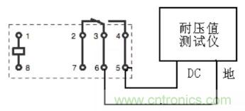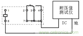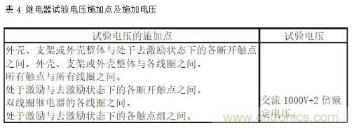 介質(zhì)耐壓(俗稱打高壓)是考核繼電器的殼體、繞阻、觸點及觸點間在規(guī)定的時間內(nèi)承受規(guī)定交流電壓的能力。而絕緣電阻是考核繼電器的殼體、繞阻、觸點及觸點間在效加規(guī)定直流電壓的條件下體現(xiàn)出來的絕緣電阻。國軍標(biāo)規(guī)定的試驗電壓施加點見表4。