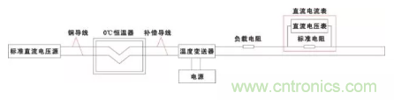 1.2 上圖中熱電偶補償導線采用與測量熱電偶對應的補償導線;用mV信號發生器模擬熱電偶信號;冰筒容器內為冰、水混合態,保持冷端溫度為0℃。