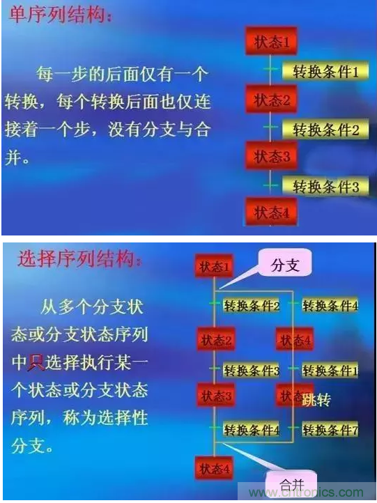 功能表圖的基本結構:單序列結構、選擇序列結構、合并序列結構