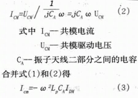 共模天線的一個極必定是設備的外部連接線,另一個極可以是設備內部印刷板的地線、電源面、機殼、散熱片、金屬支撐架等等。當天線二個極的總長度大于λ/20后,天線的輻射才有可能有效。當天線長度與驅動源諧波的波長符合下式時天線發生諧振,輻射能量最大。