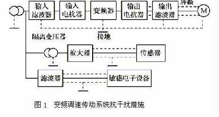 變頻器調速技術是集自動控制、微電子、電力電子、通信等技術于一體的高科技技術。它以很好的調速、節能性能,在各行各業中獲得了廣泛的應用。由于其 采用軟啟動,可以減少設備和電機的機械沖擊,延長設備和電機的使用壽命。隨著科學技術的高速發展,變頻器以其具有節電、節能、可靠、高效的特性應用到了工業控制的各個領域中,如變頻調速在供水、空調設備、過程控制、電梯、機床等方面的應用,保證了調節精度,減輕了工人的勞動強度,提高了經濟效益,但隨之也 帶來了一些干擾問題。現場的供電和用電設備會對變頻器產生影響,變頻器運行時產生的高次諧波也會干擾周圍設備的運行。變頻器產生的干擾主要有三種:對電子設備的干擾、對通信設備的干擾及對無線電等產生的干擾。對計算機和自動控制裝置等電子設備產生的干擾主要是感應干擾;對通信設備和無線電等產生的干擾為放 射干擾。如果變頻器的干擾問題解決不好,不但系統無法可靠運行,還會影響其他電子、電氣設備的正常工作。因此有必要對變頻器應用系統中的干擾問題進行探討,以促進其進一步的推廣應用。下面主要討論變頻器的干擾及其抑制方法。