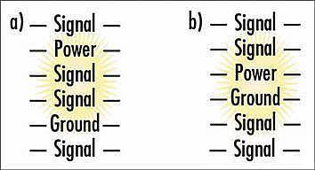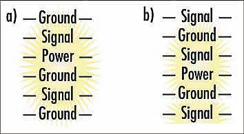 另一種6層板布局為信號(hào)、地、信號(hào)、電源、地、信號(hào),這可實(shí)現(xiàn)高級(jí)信號(hào)完整性設(shè)計(jì)所需要的環(huán)境。信號(hào)層與接地層相鄰,電源層和接地層配對(duì)。顯然,不足之處是層的堆疊不平衡。