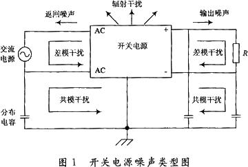 在開關電源中,主功率開關管在高電壓、大電流或以高頻開關方式工作下,開關電壓及開關電流的波形在阻性負載時近似為方波,其中含有豐富的高次諧波分量。由于電壓差可以產生電場、電流的流動可以產生磁場,以及豐富的諧波電壓電流的高頻部分在設備內部產生電磁場,從而造成設備內部工作的不穩定,使設備的性能降低。同時,由于電源變壓器的漏電感及分布電容,以及主功率開關器件的工作狀態非理想,在高頻開或關時,常常產生高頻高壓的尖峰諧波振蕩,該諧波振蕩產生的高次諧波,通過開關管與散熱器問的分布電容傳人內部電路或通過散熱器及變壓器向空間輻射。