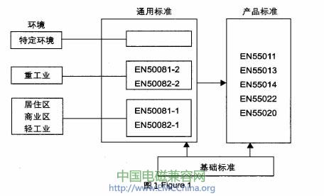 歐共體關于EMC的基本保護要求體現在其89/336/EEC指令中,所有進人歐洲市場的電子電氣產品都必需符合該指令要求。該要求最終是通過貫徹歐洲標準(EN)來實現的,其標準體系如圖1所示,由歐洲標準化委員會(CENELEC)制定實施。