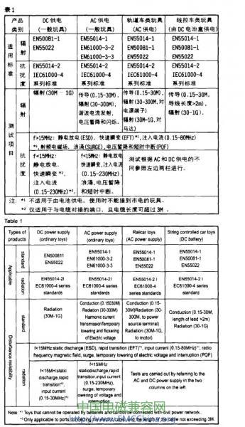 表1不包括以無線電發射接收為主要功能的玩具(如遙控車、對講機等).歐洲對該類產品有專用標準要求,在此就不另行介紹。