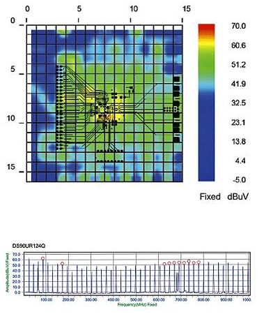 在任何新PCB的開發過程中,設計工程師都必須找出設計之外的輻射體或射頻泄漏,并對其進行描述和處理以通過一致性測試。可能的輻射體包括高速、大功率器件以及具有高密度或高復雜度的器件。掃描系統以疊加在Gerber文件上的形式顯示空間輻射特性,因此測試人員可以準確地找出所有輻射問題的來源。設計工程師可以在采取了相應的解決措施之后,對器件進行重新測試并立即量化出校正設計后的效果。