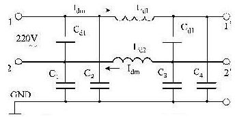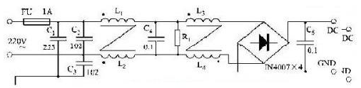 采用無源的EMI濾波器是抑制傳導干擾最有效的辦法。即在電路中插入一個帶通濾波器,讓50 Hz交流電暢通,其余頻率的信號受阻。但要嚴格控制濾波器LC元件的寄生參數(shù),它們的制作工藝、安裝位置、走線方式,都會影響EMI濾波效果。加接圖1所示的濾波電路,可以控制通過傳導耦合進入電網(wǎng)的噪聲電平。
