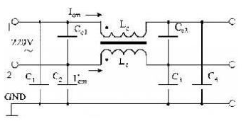 帶共模電感的EMI濾波器的元件參數(shù),不能按沒有互感的濾波器所得到的公式進行計算。通常要先決定所采用的電路結構,然后利用共模等效電路,用網(wǎng)絡分析理論,求出它的共模插入損耗。