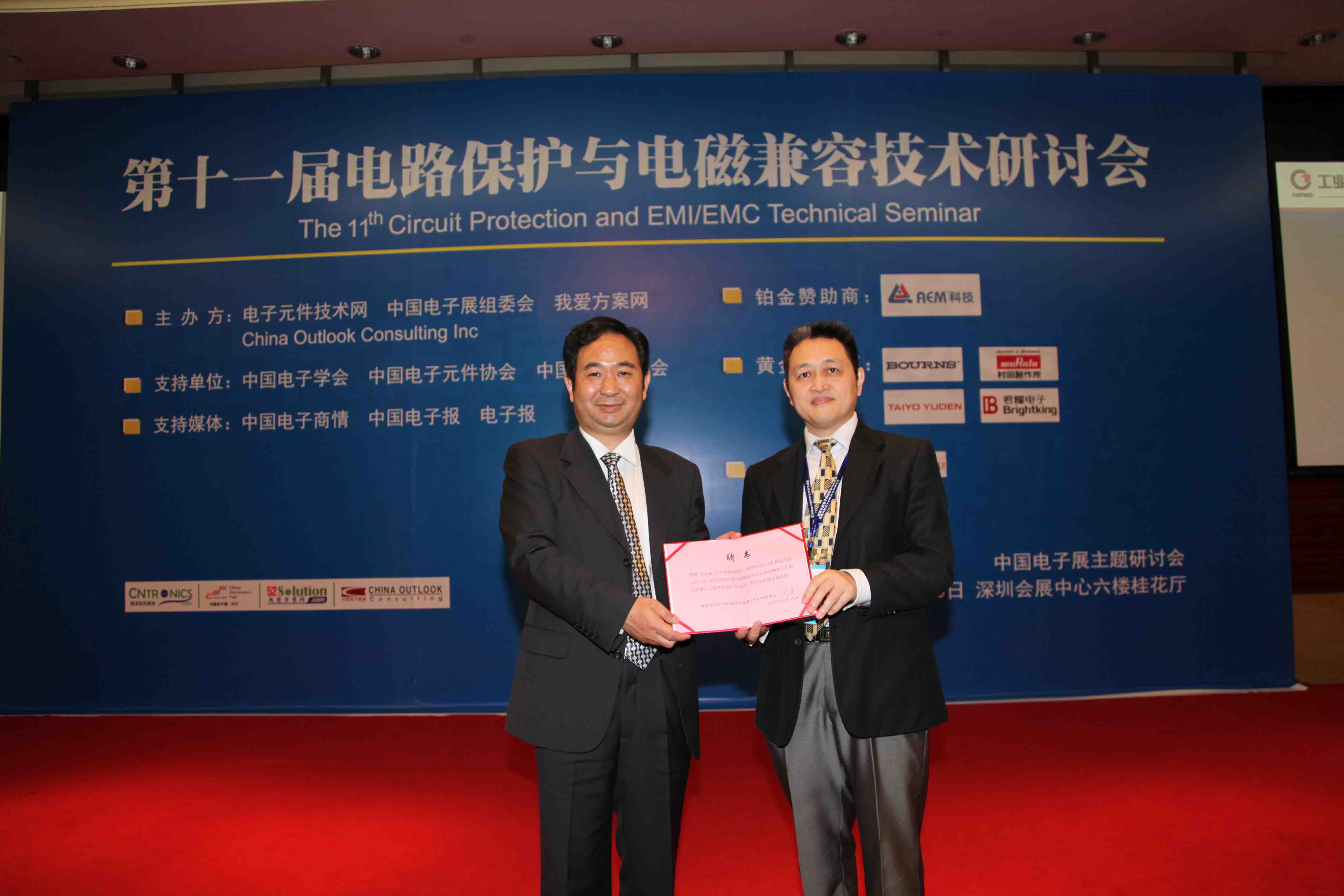 由電子元件技術網(m.sn-icity.com)攜手中國電子展、我愛方案網(www.52solution.com)和China outlook consulting主辦的第十一屆新電路保護與電磁兼容技術研討會于4月10日在深圳會展中心六樓水仙廳勝利召開!