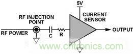 具體而言,這些測試都采用 “直接功率注入法”完成,這是一種通過電容將RF信號耦合至特定器件引腳的方法。根據待測IC的類型,針對不同的RF信號功率水平和頻率范圍,測試器件的每路輸入。圖4顯示了在特定引腳上執行直接功率注入測試的原理示意圖。