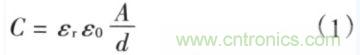 式(1)顯示,減小電容器極板之間的距離(d)和增加極板的截面積(A)將增加電容器的電容量。電容通常存在等效串聯(lián)電阻(ESR)和等效串聯(lián)電感(ESL)二個(gè)寄生參數(shù)。