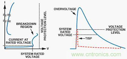 TISP的非線性電壓-電流特性通過轉移產生的電流來限制過壓。作為晶閘管,TISP具有非連續電壓-電流特性,它是由于高電壓區和低電壓區之間的切換動作而導致的。圖8顯示了器件的電壓-電流特性。在TISP器件切換到低電壓狀態之前,它具有低阻抗接地路徑以分流瞬變能量,雪崩擊穿區域則導致了箝位動作。在限制過壓的過程中,受保護電路短暫暴露在高壓下,因而在切換到低壓保護導通狀態之前,TISP器件處在擊穿區域。TBU將保護下游電路,防止由于這種高電壓導致的高電流造成損壞。當轉移電流降低到臨界值以下時,TISP器件自動復位,以便恢復正常系統運行。
