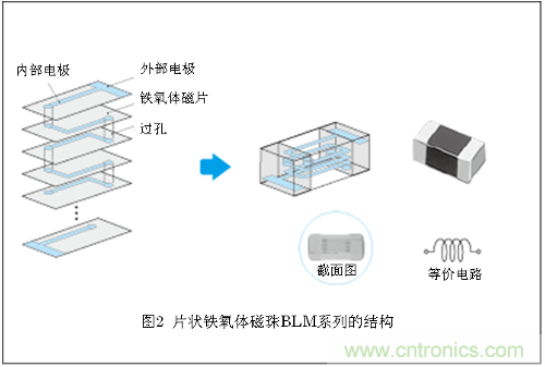 片狀鐵氧體磁珠通過疊層而形成了電感器的構造