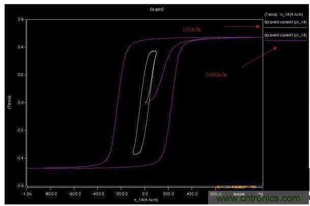 這個(gè)時(shí)候磁滯回線變成了樣子?注意看100A/m,-100A/m,50A/m,-50A/m 這幾個(gè)轉(zhuǎn)折點(diǎn)。