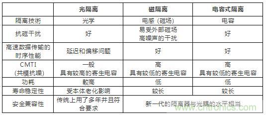 表1:三種主流隔離技術的比較