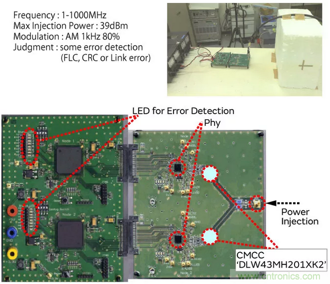 進(jìn)行DPI(Direct Power Injection)試驗(yàn),確認(rèn)了共模扼流圈的抗擾性改善效果。