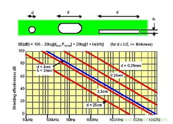 b、避免開細(xì)長孔,通風(fēng)孔盡量采用圓孔并陣列排放。屏蔽和散熱有矛盾時(shí)盡可能開小孔,多開孔,避免開大孔;