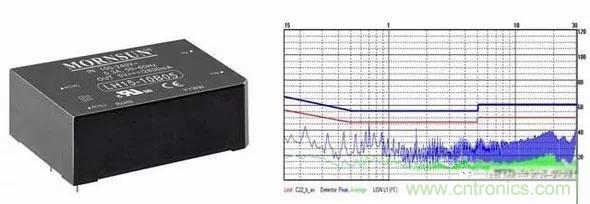 上圖為MORNSUN電源LH15-10B05的電源應(yīng)用到某品牌產(chǎn)品上面后,整機測試傳導(dǎo)騷擾結(jié)果,此結(jié)果無法符合EN55022/CISPR22的CLASS B要求,甚至連CLASS A都無法滿足要求,更不用說設(shè)計余量。所以電源即使內(nèi)部電磁干擾設(shè)計等級再高,在應(yīng)用過程中一定要留應(yīng)用部分,具體參數(shù)可參考具體產(chǎn)品對應(yīng)的規(guī)格書。MORNSUN的電源產(chǎn)品在規(guī)格書中都會有應(yīng)用電路這一欄,會將在應(yīng)用電路的基礎(chǔ)上實現(xiàn)的指標,描述的非常詳細。