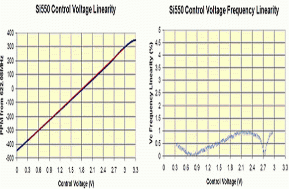 圖4:Si550控制電壓的線性特性。