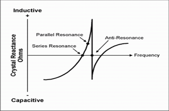 通過(guò)添加外部元件(通常是電容),石英晶體可振蕩在串聯(lián)與反諧振頻率之間的任何頻率上。在晶體工業(yè)中,這就是并聯(lián)頻率或者并聯(lián)模式。這個(gè)頻率高于串聯(lián)諧振頻率低于晶體真正的并聯(lián)諧振頻率(反諧振點(diǎn))。圖2給出了典型的晶體阻抗與頻率關(guān)系的特性圖。