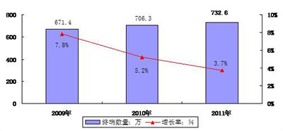 圖2 2009-2011年中國便攜式電子學(xué)習(xí)產(chǎn)品市場(chǎng)銷售量及其發(fā)展速度預(yù)測(cè)