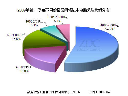 (圖) 2009年第一季度不同價格區(qū)間筆記本電腦關(guān)注比例分布