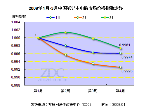2009年第一季度是各大筆記本廠商促銷和搏殺的時期。1月份,在經(jīng)歷了圣誕、元旦的促銷降價之風(fēng)后,各大廠商蓄勢待發(fā)的迎接春節(jié)。