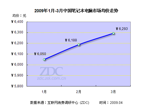 經(jīng)過了幾年的價格洗禮,如今筆記本已經(jīng)走近了尋常百姓家,再不是高不可攀的奢侈品。根據(jù)ZDC最新的均價調(diào)查顯示,2009年第一季度,筆記本市場均價為6000多元。1月份市場均價為6050元,2月與3月,筆記本市場嚴(yán)重缺貨導(dǎo)致價格出現(xiàn)上漲,市場均價在3月份達(dá)到了6293元。