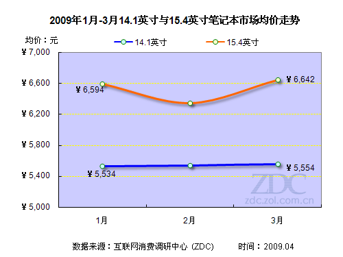 ZDC調(diào)查顯示,14.1英寸與15.4英寸產(chǎn)品是第一季度筆記本電腦市場的兩大主流機型,對市場價格變動的影響最大。