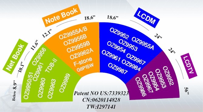 基于這樣的技術積累,目前凹凸科技已成為擁有最廣泛LCD背光驅動IC產品線的廠商,如圖1所示,從上網本到筆記本電腦再到LCD顯示器模塊、LCD TV,尺寸從8.9寸橫跨到56寸,凹凸科技能提供滿足各類應用需的相應LED驅動器解決方案(具備不同的效率等級、PWM接口、不同通道數),包括3x9、4x7、4x8、6x10、8x8、8x9等不同配置。多種技術特性如集成高速PWM功能、采用快速切換的開關模式、突波模式與相移技術,及其專有的區域照明等技術,則可幫助開發人員解決多串數LED均流、LED線性調光所產生的噪聲、功率耗散,以及廠商對于保護規格要求不一等挑戰。