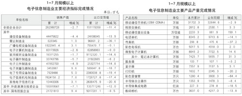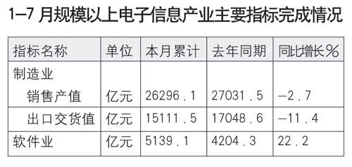 1-7月規模以上電子信息產業主要指標概覽