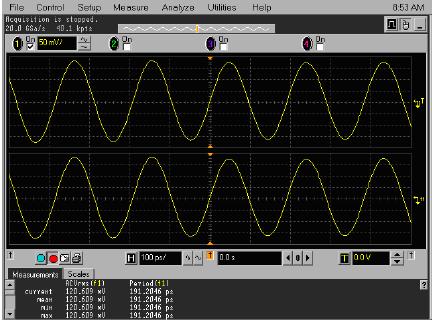 安捷倫示波器演示了SinX算法完全失敗。內插完全破壞了4 GHz波形。解決方案是避免SinX內插,或一直以20 GS/s運行這一示波器。