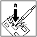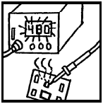 在焊接時,請勿施壓過大,否則會使烙鐵頭受損變形。只要烙鐵頭能充份接觸焊點,熱量就可以傳遞。另外選擇合適的烙鐵頭也能幫助傳熱。 (圖4)