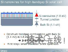 - IMEC的目標是實現在硅底板上形成硅納米線的太陽能電池,轉換效率將達到約33%