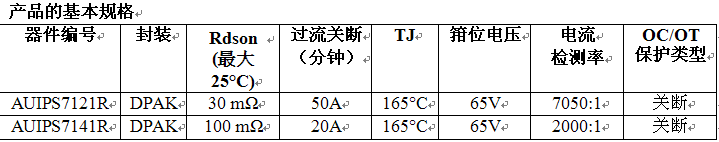 AUIPS7121R 和 AUIPS7141R 提供全面的保護功能,確保開關安全可靠。此外,新器件的過流關斷、過溫關斷和有源箝位電路功能都能確保在重復短路的情況下實現安全運行和保護。