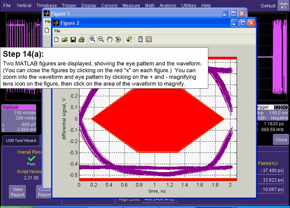 根據(jù)選擇好的測試項目,QualiPHY隨即展開一系列自動化測試過程:自動設(shè)置示波器工作參數(shù)包括采樣率、存儲深度、采集時間、縱軸刻度、觸發(fā)電平等;自動定義測量參數(shù);自動調(diào)用第三方軟件如Matlab對波形運算,自動分析波形和測量結(jié)果,自動輸出分析結(jié)果,整個測試過程完全是自動化的,無需任何人工干預(yù)。在測試過程中會同步顯示測試狀態(tài)和過程提示。