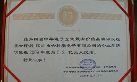 - 合科泰獲得“中華電子企業(yè)最有價值品牌”獎