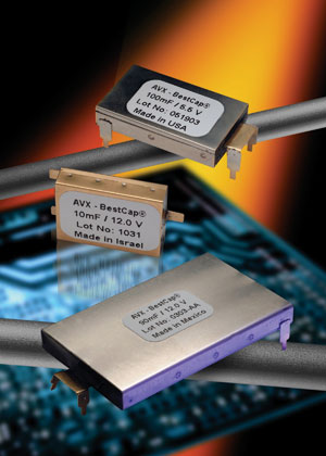 脈沖超級電容器的封裝也在不斷發展,主要朝向小占板面積和低高度方向。例如,AVX的BestCap®系列超級電容器大約8年前就面市了,包括了具有標準28mm×17mm尺寸和48mm×30mm大尺寸的型號,厚度范圍是2.0mm~6.0mm。目前,已經開發出了小尺寸(20mm×15mm)的型號,更加微小尺寸(15mm×12mm)的型號也正在開發中(見圖1)。這些超級電容的結構是非常堅固的,具有精密鋼質外殼。所有內部單元部件都采用環保材料、無有機溶劑的水溶性材料制造,這些相同的單元部件會構成單元陣列。由于采用實體封裝和相同的結構,可以承受超過1000g的重力加速度沖擊,而且這些內部單元的工作溫度范圍是-40~+75℃。