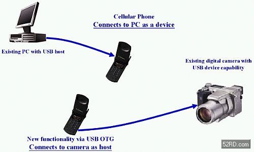 圖中的手機即是典型USB OTG中的DRD,手機與PC相連時,手機為Device的從端角色,