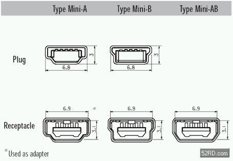 其中Mini-AB接座可以連接Mini-A或Mini-B的接頭,主要是為USB OTG中的DRD而設計。