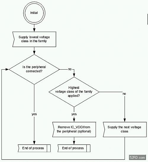 Inter-Chip USB在電壓類別(Voltage Class)上的協調順序圖。