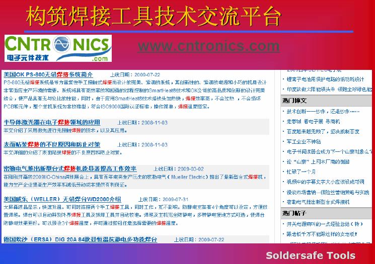 電子元件技術網http://m.sn-icity.com/club/muellerindex?ref=top_nav可以提供給我們一個平臺,在這個平臺里面,我們可以對于焊接設備的一些使用性能可以進行一些討論,對于新型焊接工藝本身的工藝特點進行一些分析,對于焊接材料,對于新工藝、新材料我們可以進行相應的分析,大家也可以直接,如果網絡方便的話,登錄到這個網站,我相信在這個平臺上可以一起努力,為之后的行業發展起到更多的推動作用。