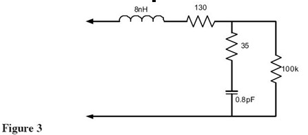 查看Figure 1中的等效電路,可以看到諧振頻率(1/(2*PI*sqrt(LC))給出)點(diǎn)的探頭輸入阻抗是0歐姆——完全消除了被測(cè)信號(hào)!最近一些制造商開(kāi)始注意這個(gè)問(wèn)題并設(shè)計(jì)具有更好輸入特性的探頭。Figure 3展示了這種探頭(Probe A)的等效電路。這是許多給出這個(gè)探頭精確依賴于尖端和地夾的等效負(fù)載模型之一。這個(gè)探頭還有一個(gè)諧振點(diǎn)大概是2GHz,該頻點(diǎn)的阻抗被電阻限制到大約165歐姆。