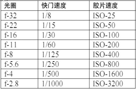 表1攝影組合級數(shù)