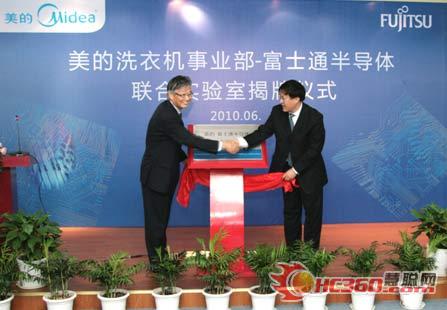富士通半導體株式會社副社長與洗衣機美的洗衣機事業部總裁為聯合實驗室揭牌