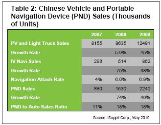 盡管2009年中國市場的乘用車(PV)和輕型卡車銷量接近1230萬輛,躍居全球最大的汽車市場,但包括OEM和售后in-dash在內的車載導航配售率只有7%左右。