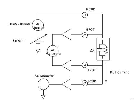 換而言之,這種測試通過加載交流電壓然后測量產(chǎn)生的交流電流、交流電壓和它們之間的阻抗相角,最終測出DUT的交流阻抗。