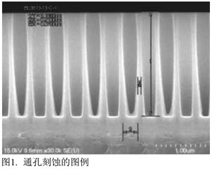 隨著半導體制造技術推進到更加先進的深亞微米技術,半導體金屬布線的層數越來越多,相應的通孔刻蝕工藝也越多,并且伴隨著通孔的尺寸隨著器件設計尺寸逐步縮小。以DRAM制造為例,存儲量由4M發展到512M時,設計規則由1μm縮小到0.16μm,其中通孔的尺寸也從0.8μm下降到了0.25μm。通孔尺寸越小,刻蝕的難度也越來越大,如果刻蝕不到位,就可能出現金屬布線間的開路,直接導致器件失效。