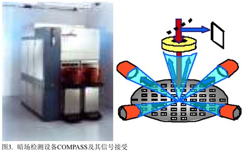 暗場檢測技術作為檢測晶片缺陷的有效手段之一,其優點在于以下幾個方面:首先,在暗場獲得圖像的灰階易于控制和調節。暗場是位于硅片上方和硅片成30度角的區域,在此區域內獲得的圖像灰階,可以通過調節激光的能量和探測器的敏感度來輕松控制;其次,在暗場內,可以很容易地辨認有具體形態和位于硅片表面的缺陷,比如刮傷、微粒之類的缺陷;最后,使用暗場的檢測速度非??欤杀鞠鄬Ρ容^低,通常被用作快速分析影響產量的各類缺陷超出界定值的問題,AIT和COMPASS是在半導體制造企業廣泛應用的暗場檢測設備(如圖2和3所示)。[page]
